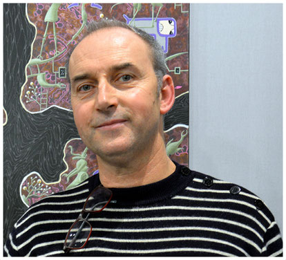 Influences: Tout ce que l’histoire de l’Art de la peinture rupestre à la peinture contemporaine nous offre à voir et à s’émouvoir. Toutes les époques m’intéressent mais j’ai un penchant pour la préciosité du style Gothique dit « international » et pour le quattrocento Italien. La peinture flamande me donne un plaisir fou. Le « maniérisme » m’influence aussi pour les poses affectées que prennent mes créatures ou personnages divers. D’autres influences telles que Gustave Klimt, Diego Rivera, Valerio Adami, Robert Combas, Yvon Taillandier, François Boisrond, Keith Haring,Les peintres du groupe « exubérantes écritures» du salon Comparaison d’Art Capital à Paris que préside Jean-François Larrieu, 9ème concept et le «Street art » sont quelques références importantes parmi tant d’autres. Impossible de tout lister car le Design, la Pub, l’Architecture, les Arts décoratifs, la nature bien sûr, bref la vie sont autant de sources de stimulation de mon imaginaire